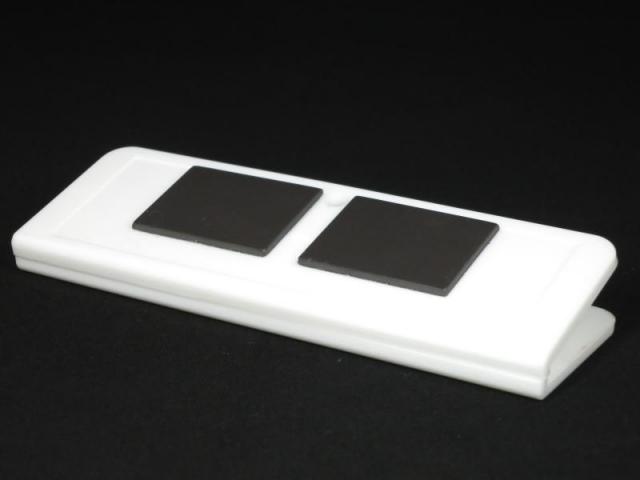 ピアノ鍵盤ジャンボマグネットクリップ 白 黄に名入れを施した販促用粗品です